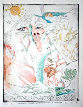 grabado coloreado a mano
